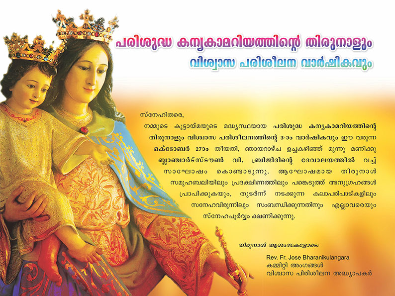 ബ്ലാഞ്ചർസ്റ്റൗൻ സീറോ മലബാര് കൂട്ടായ്മയിൽ പ.കന്യകാമറിയത്തിന്റെ തിരുനാൾ ഒക്ടോബർ 9 ഞായറാഴ്ച
